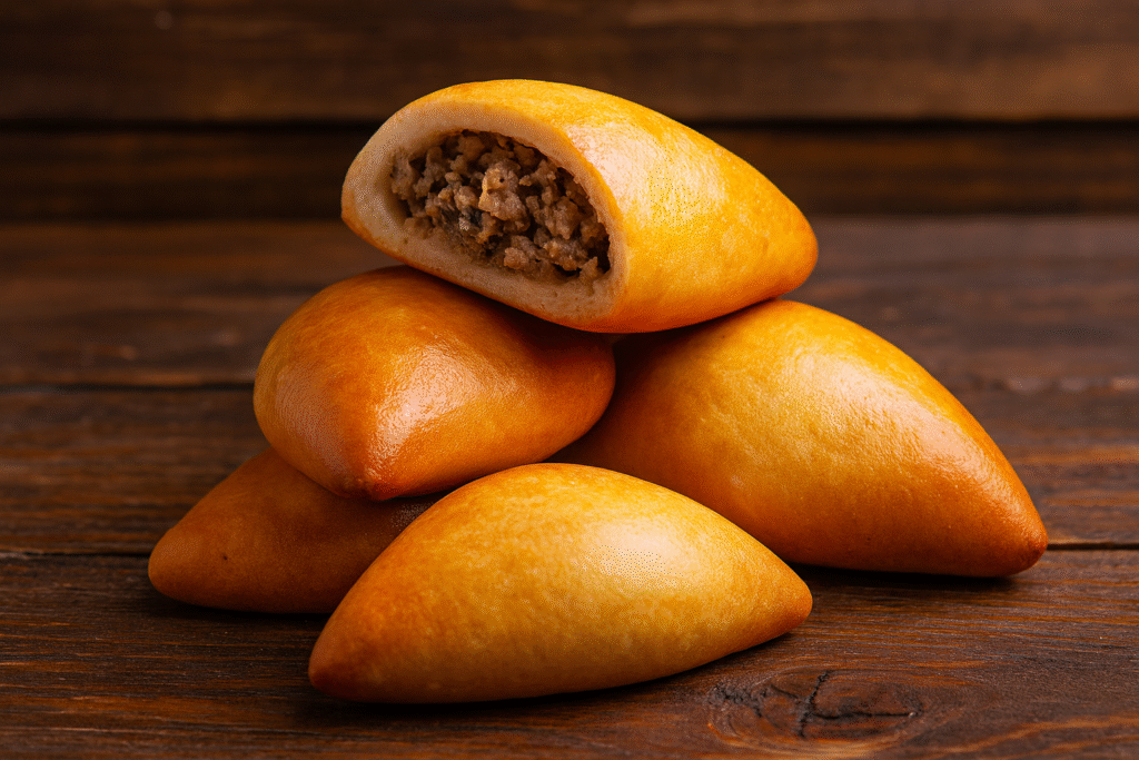 • Carne — recheio temperado, suculento e marcante, entregando um perfil mais robusto e indulgente.