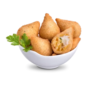 As nossas coxinhas de frango são um verdadeiro deleite! Feitas com uma massa fina e crocante, são recheadas com um suculento e temperado frango desfiado. Ideais para servir como petisco ou como parte de uma refeição, estas coxinhas são uma combinação perfeita de sabores e texturas que vão deixar qualquer um com água na boca.